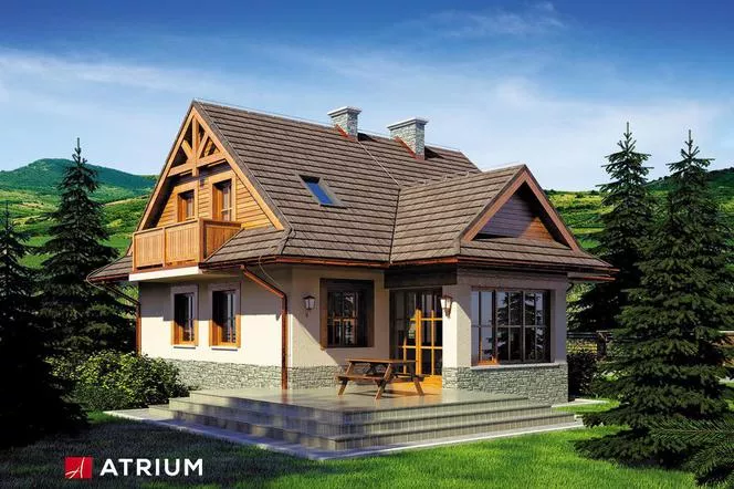 Projekt kuće S-GL 817 Koliba, arh. Piotr Godlewski, arh. Krzysztof Lelek. Područna kuća u beskidskom stilu, prizemnica s potkrovljem. Pogledajte ovaj dizajn kuće