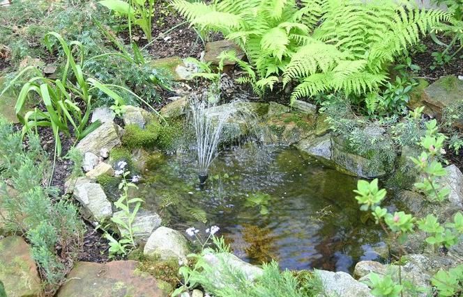 Ovaj se element cijenio stoljećima. Već u srednjovjekovnom samostanu zatvara se fontana koja je bila "ključni kamen" kompozicije. Može se postaviti u ribnjak ili ribnjak ili montirati na posebnom ukrasnom postolju, npr. Među biljkama. Za uživanje u njegovoj ljepoti dovoljno je vode za raspršivanje mlaznica (vrha) za povezivanje s pumpom. U malim ribnjacima postavljena je pumpa na dnu i na nju spojena mlaznica. U velikim je slučajevima prikladnije postaviti crpku blizu ruba ili vanjske strane, a mlaznicu postaviti na posebno postolje ili postolje (na primjer, od kamenja) i spojiti ga na pumpu pomoću crijeva za vodu. Za nesmetan rad crpke potreban je filter kroz koji teče voda prije nego što se pumpa u raspršivač. U nekim modelima kućište crpke funkcionira kao filtar, postoje i oni kod kojih se veličina otvora filtera može podesiti.