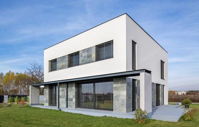 Obrezana - ovo je izvanredna, impresivna kuća, pogodna za 21. stoljeće. Zgrada se usredotočuje na maksimalnu funkcionalnost i hladnu estetiku, sastavljena na osnovi sive boje s drvenarijom u narančastoj. Kuća je kompaktan dvoetažni blok u kombinaciji s jednokatnicom garaže. Duž cijele bočne fasade dizajnirano je opsežno zastakljivanje, a u potkrovlju, u uzdužnoj spavaonici - dugi, okruženi prozori. Svi ti elementi stvorili su modernističku sliku koja zadivljuje svojom sirovinom i geometrijskim oblikom.
